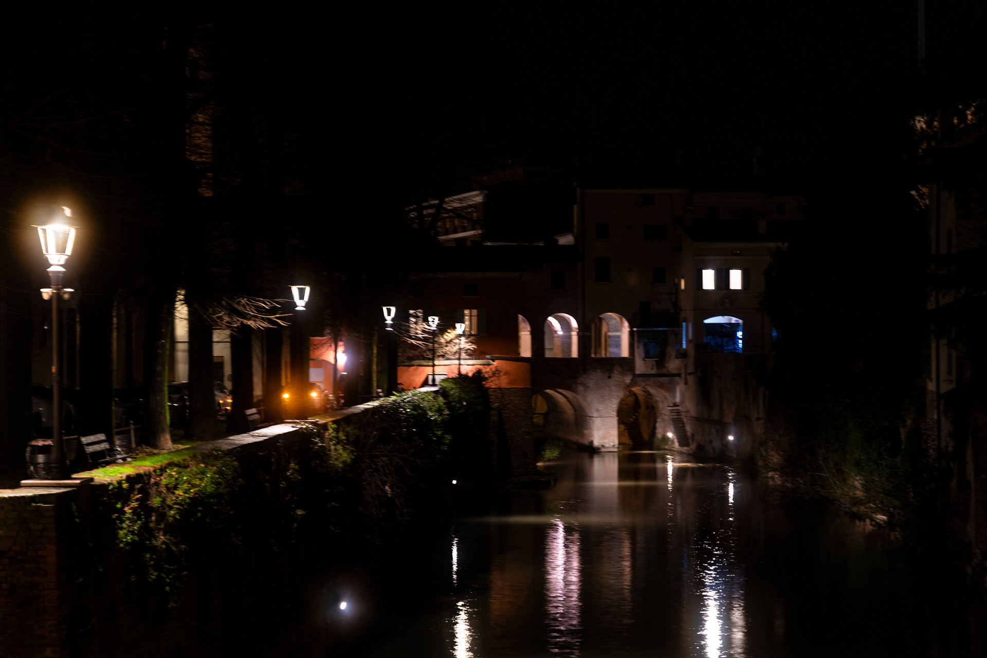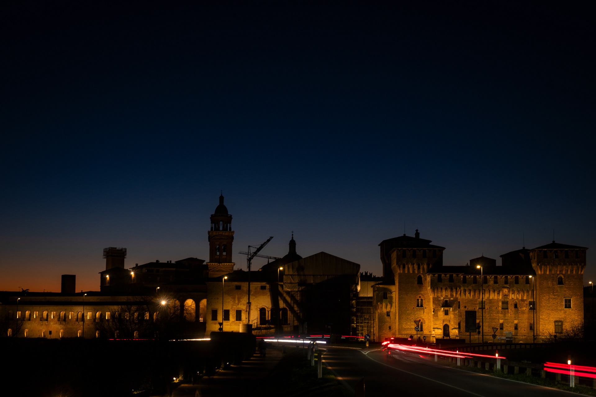 La notte sottrae Mantova alla sua immagine consueta e la restituisce come spazio di sospensione. Quando la luce si riduce, la città smette di raccontarsi e lascia emergere una presenza più silenziosa, stratificata.