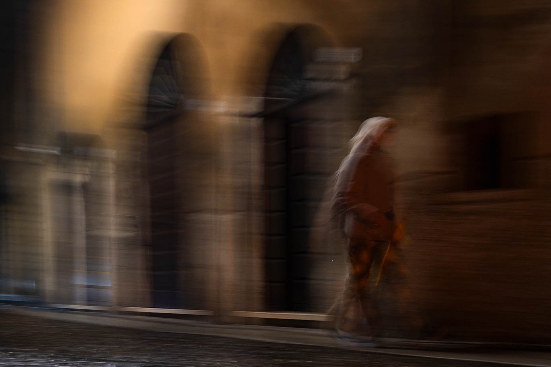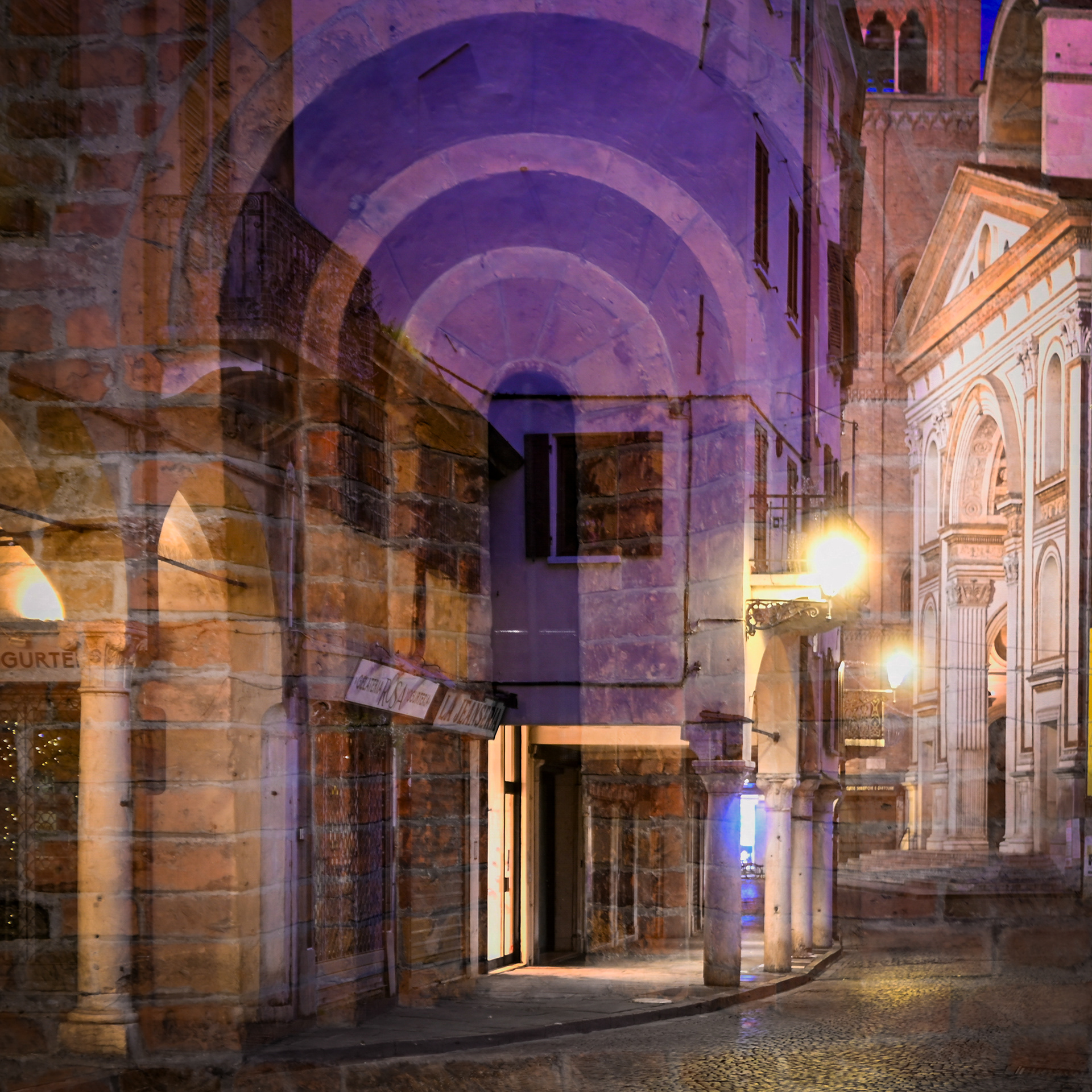 Questo lavoro attraversa Mantova nel tempo notturno, dove la storia non è più narrazione ma materia: un’eredità che non si impone, ma persiste. La memoria dei Gonzaga non appare come celebrazione, ma come traccia diffusa, sedimentata nella struttura della città e nel suo ritmo quotidiano.