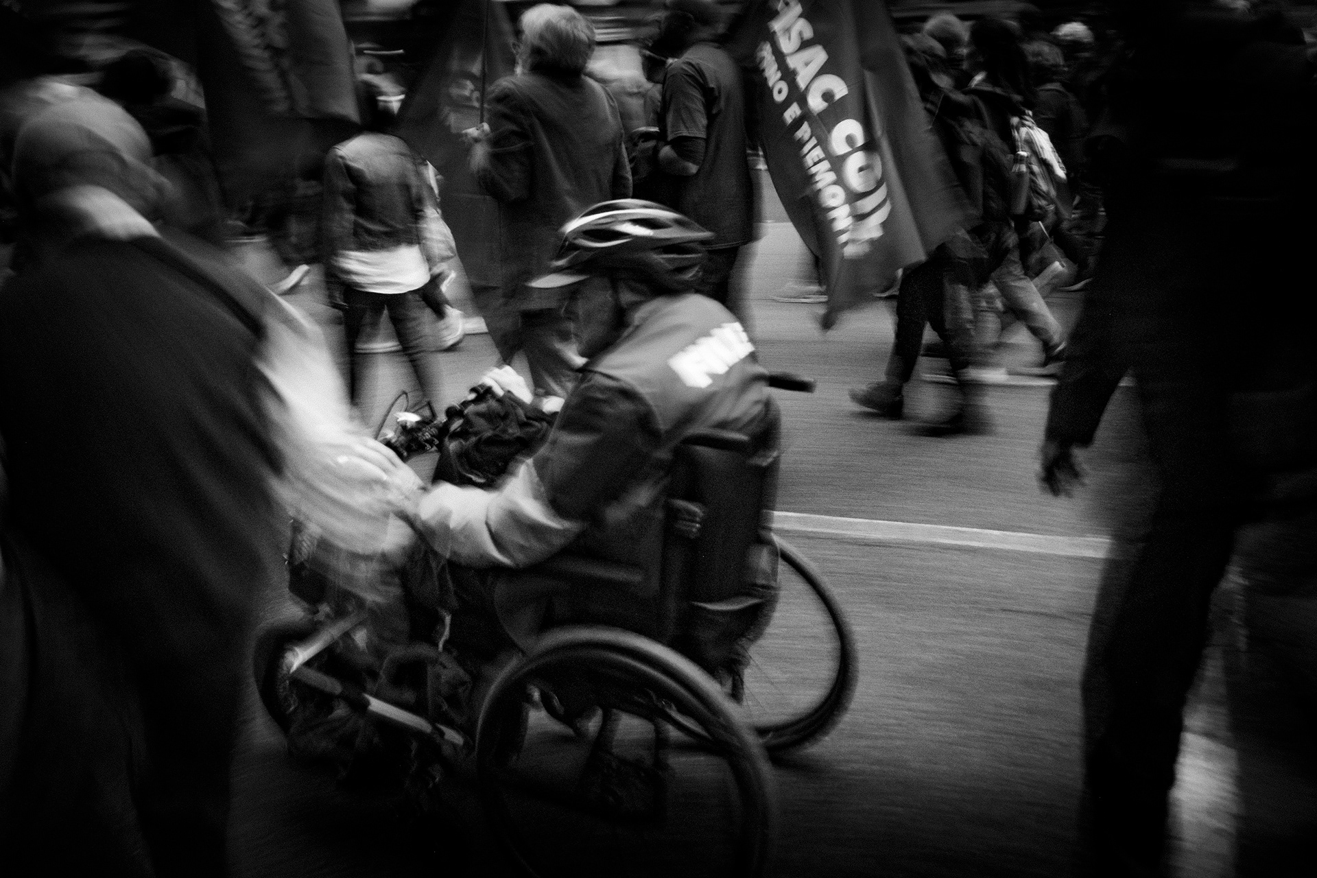 Il progetto fotografico nasce dall’urgenza di osservare e registrare ciò che accade nello spazio pubblico quando un disagio individuale si trasforma in esperienza collettiva. Non si riferisce a una singola manifestazione, ma attraversa forme diverse di protesta: politiche, legate ai diritti civili e al lavoro. Ciò che le accomuna non è il tema specifico, ma la necessità di rendere visibile un disagio che chiede ascolto. La manifestazione è spesso interpretata come provocazione o disturbo dell’ordine. Il progetto ribalta questa lettura: la provocazione non è l’atto di scendere in strada, ma la condizione che lo rende inevitabile. Le immagini si concentrano su gesti, corpi e presenze che occupano lo spazio pubblico non per generare conflitto, ma per affermare un’esistenza, una richiesta, un bisogno condiviso. La fotografia diventa così uno strumento di ascolto e di prossimità. Non cerca una documentazione esaustiva né una posizione definitiva, ma si avvicina ai segni del dissenso mantenendo aperta la lettura.